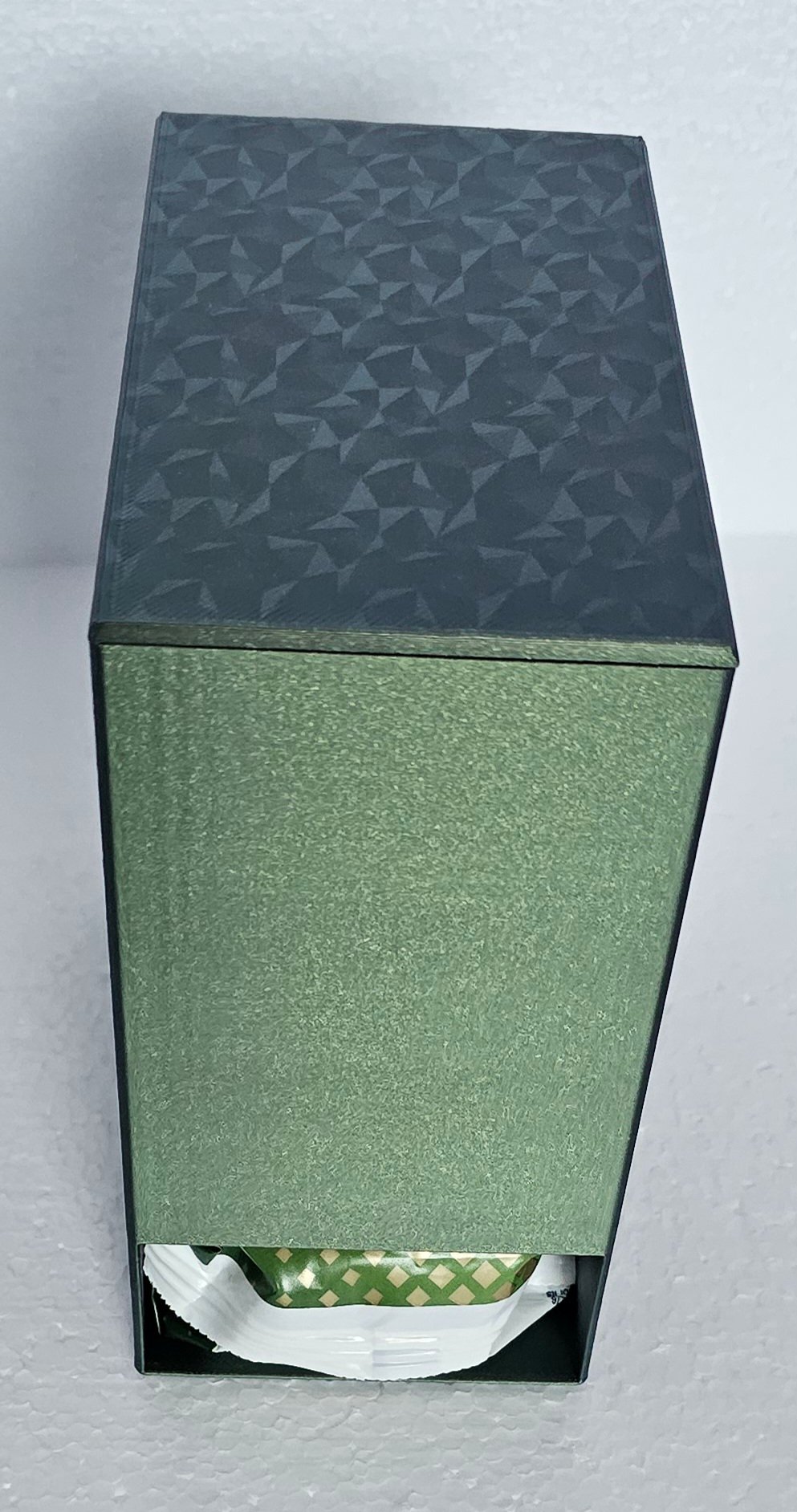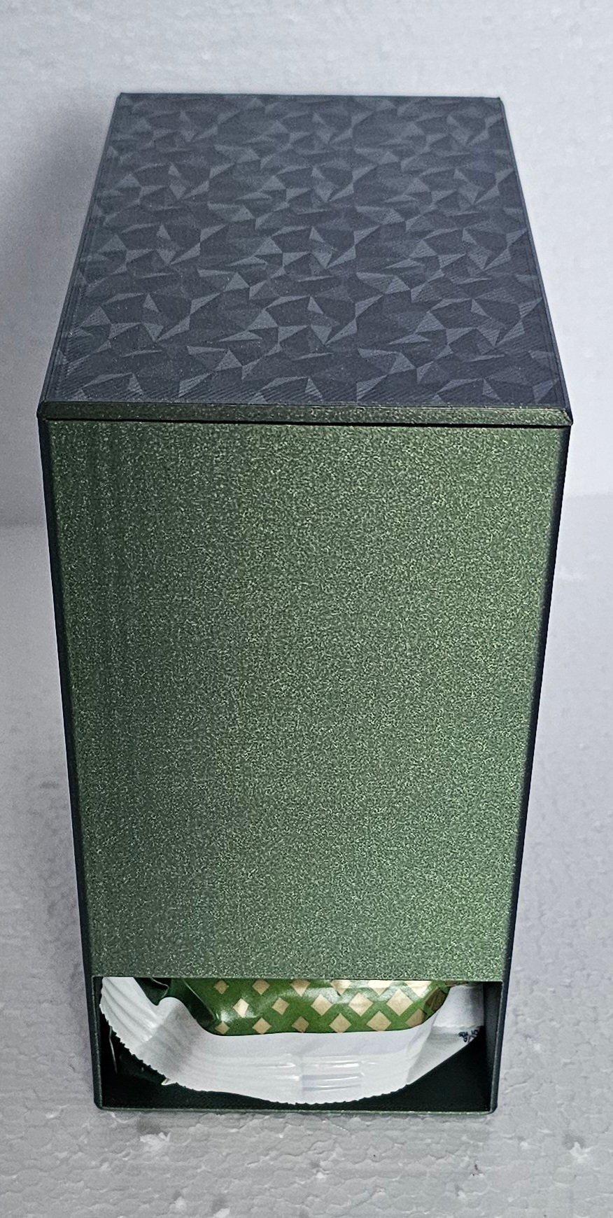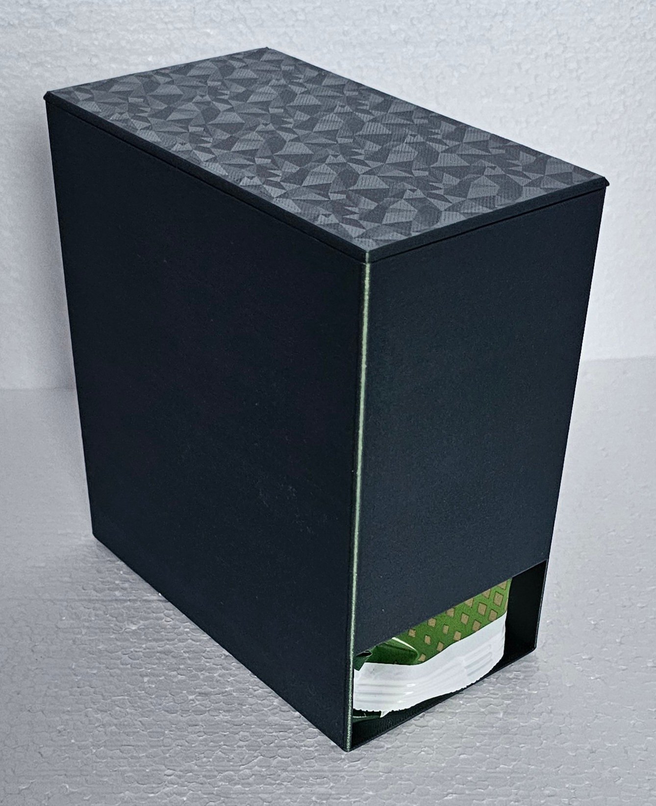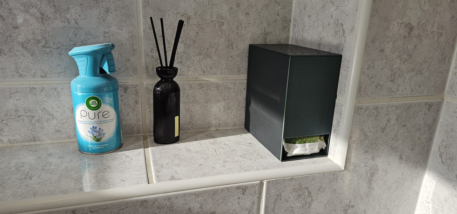 Deze houder houdt de stapel goed uit het zicht terwijl je wel duidelijk ziet waar je een nieuw pak vandaan kan halen.