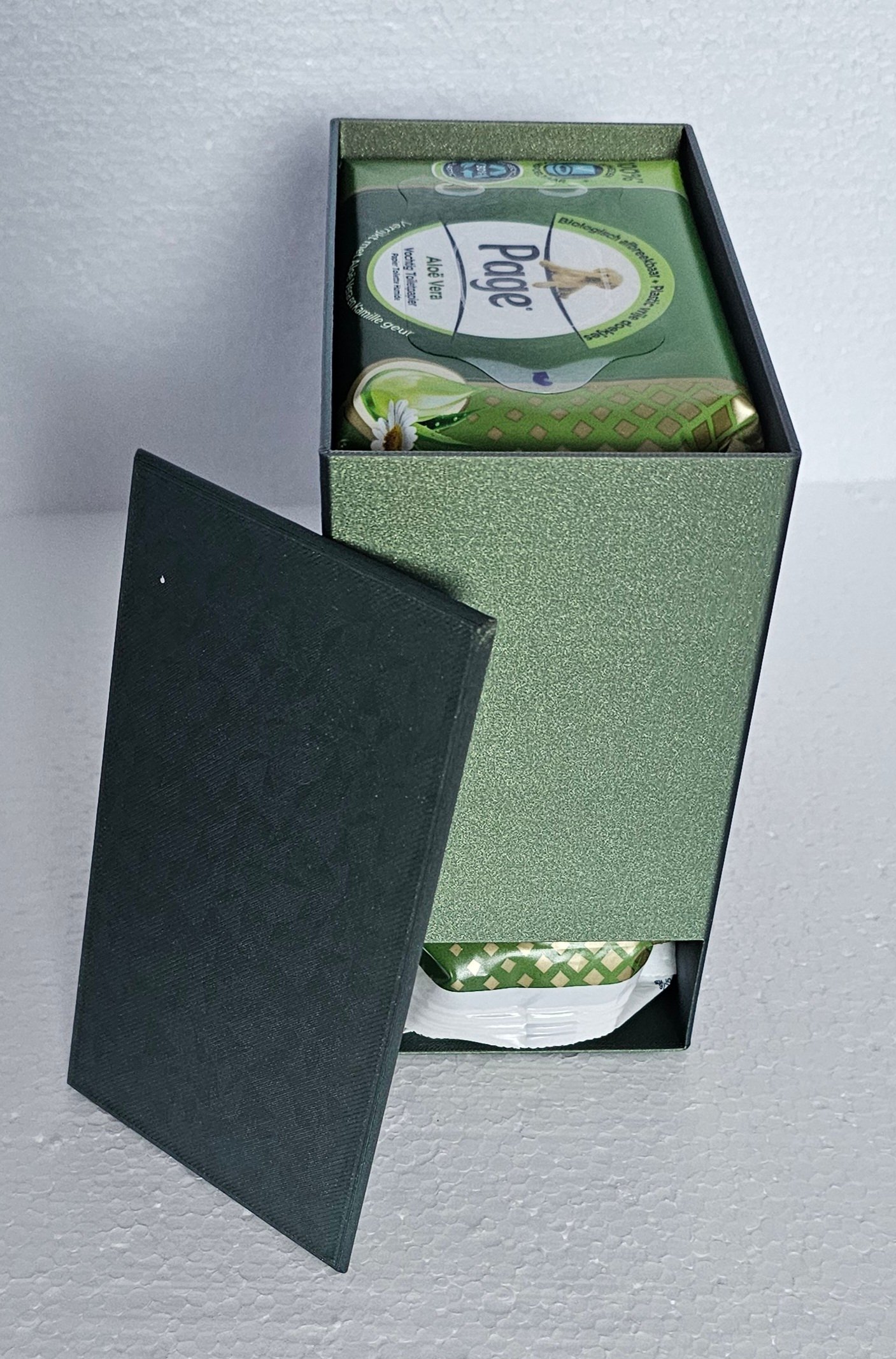 Opslag of houder voor 4 pakken vochtig toiletpapier van o.a. Page.